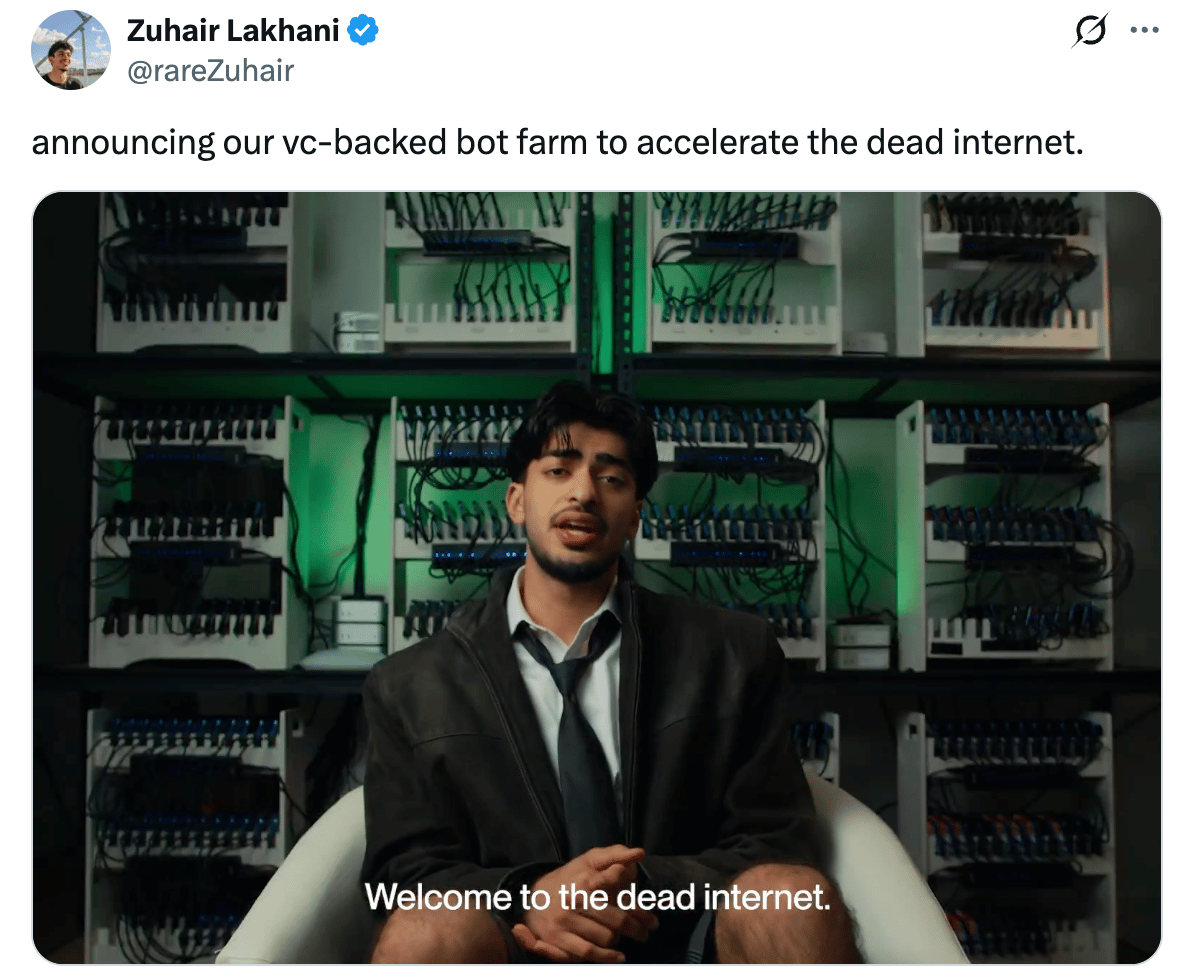 If you put 1% of your fund into something that is just going to go all over the internet and be like, we're the most degenerate, we're the craziest, we're the most insane, we're the most fraudulent, like in your face company … well, if that 1% gets a thousand times more views than your enterprise SaaS portfolio, like you're going to be known as the slop fund.