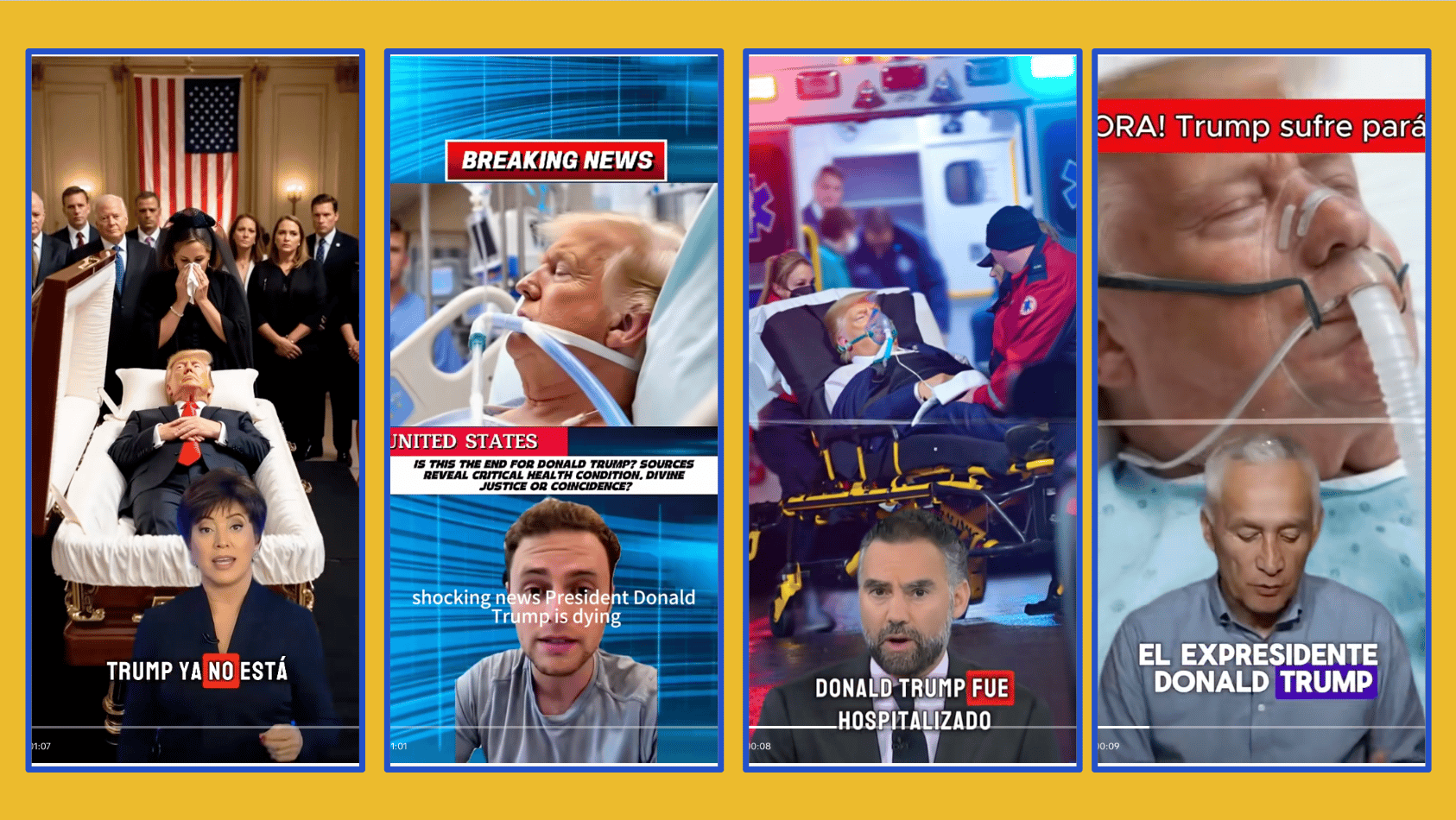 📍 Donald Trump’s health is the subject of misinformation on TikTok, especially in Spanish. 11 videos published in the past few weeks variously claim the US president is paralyzed, dying1, or dead. Some of the videos use AI avatars of news anchors Lester Holt and Jorge Ramos to spread the false claims. We previously reported that the app struggles with Spanish-language “fake news.” TikTok did not respond to our requests for comment about the videos, which have been seen 7 million times.