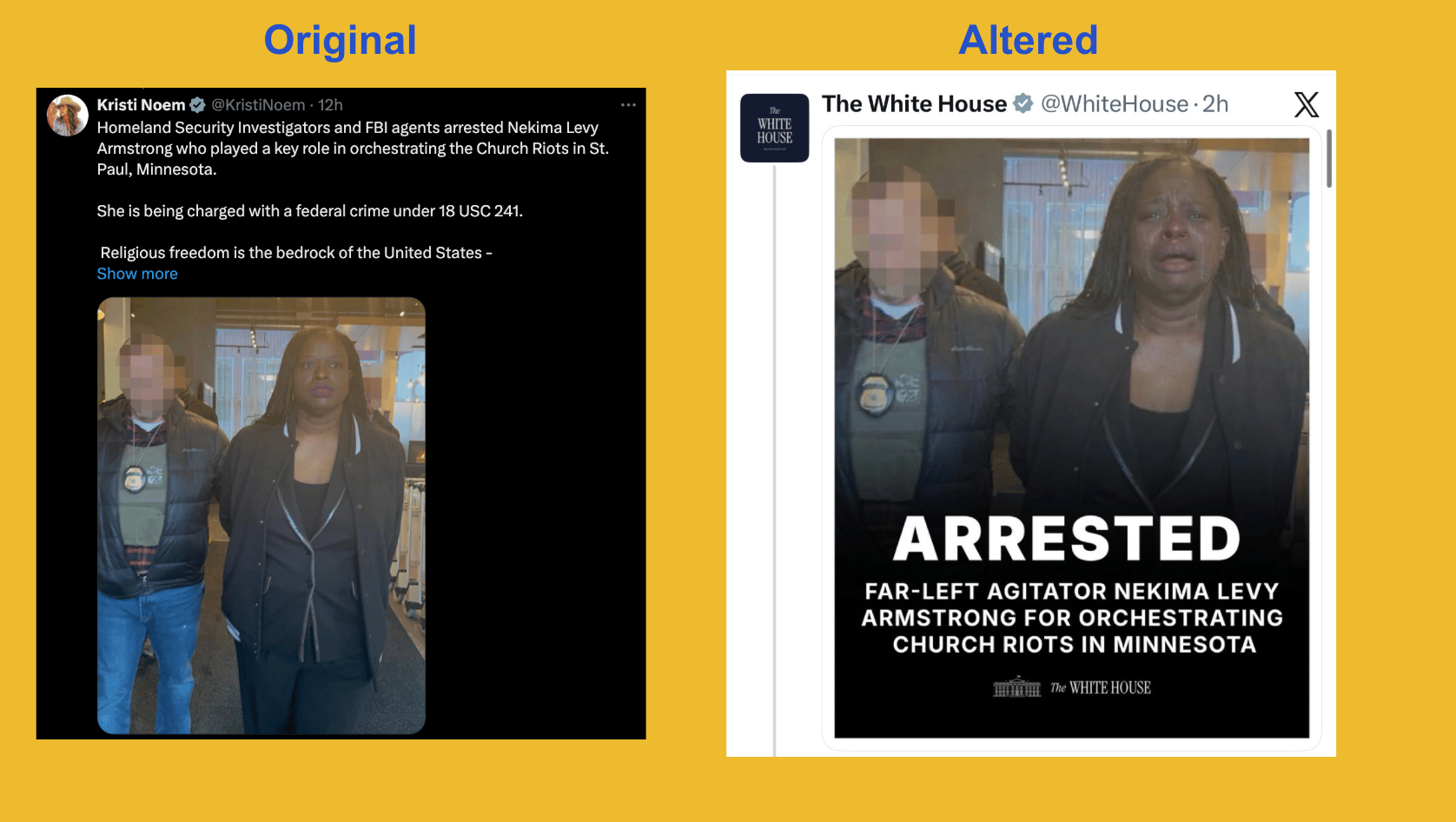 In a new and disturbing first, the White House apparently used AI to alter a photo of Nekima Levy Armstrong, a civil rights lawyer that was arrested after she interrupted a church service in St. Paul, Minn.